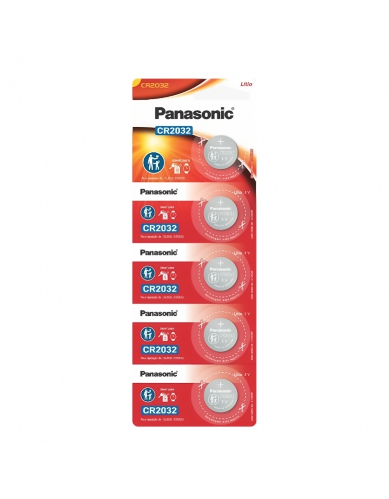 A Bateria de Lithium CR2032 3V da Panasonic é ideal para pequenos aparelhos que demandam alta densidade de energia, como calculadoras, agenda eletrônica, placa-mãe e controles, também conhecida como pilha botão ou moeda.