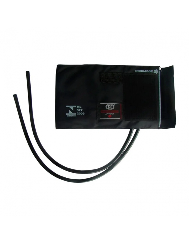 Manguito tamanho adulto G com 2 tubos, fabricado em borracha de PVC (livre de látex), mais resistente e durável para uso exclusivo de esfigmomanômetro aneroide.