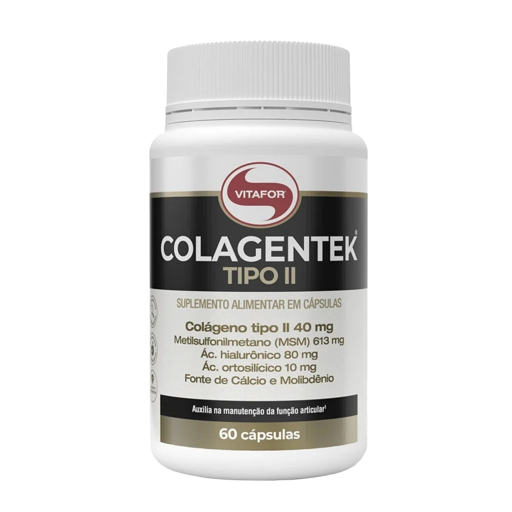 O Colagentek Tipo II é um suplemento alimentar que combina colágeno tipo II não desnaturado, metilsulfonilmetano (MSM), ácido hialurônico, extrato de alho e minerais, sem adição de açúcares. Ele atua no suporte à função articular e à saúde das cartilagens, ajudando na manutenção da mobilidade e no conforto das articulações.
