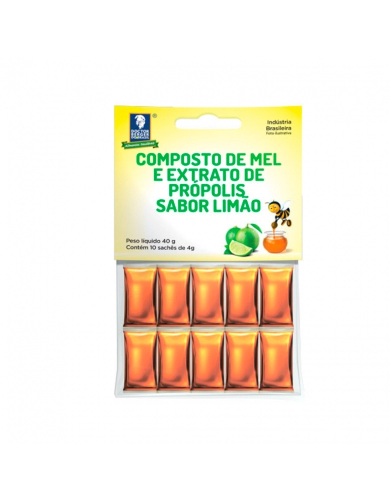 MEL E EXTRATO DE PRÓPOLIS LIMÃO C/10 SACHÊS 4G DOCTOR BERGER