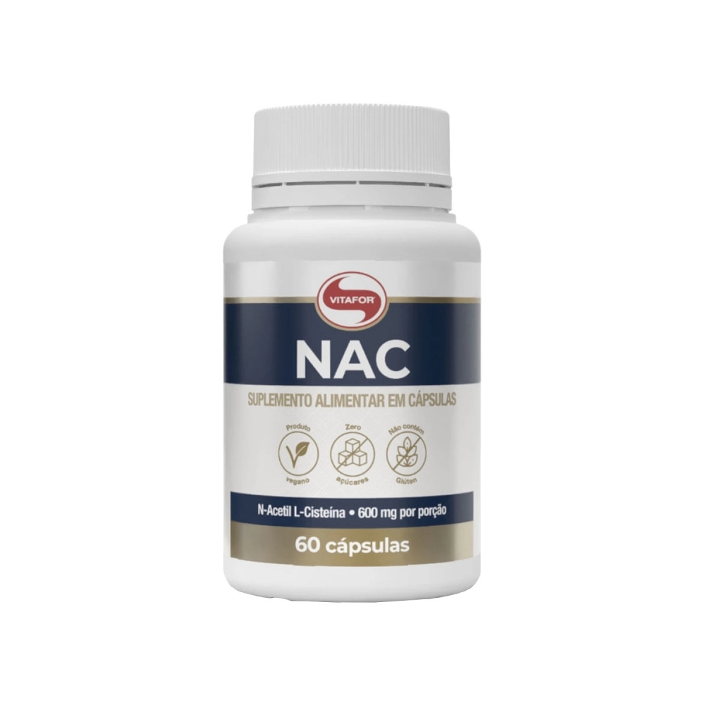 O NAC 600 mg é um suplemento alimentar à base de N-acetilcisteína, aminoácido precursor da glutationa, um dos mais importantes antioxidantes produzidos pelo organismo. Sua suplementação auxilia na proteção antioxidante, no suporte à saúde hepática e no funcionamento do sistema respiratório, contribuindo também para o equilíbrio do sistema imunológico. A N-acetilcisteína participa de processos de desintoxicação celular, ajudando a combater o estresse oxidativo causado por poluição, hábitos intensos ou atividade física elevada. A fórmula em cápsulas facilita a ingestão diária e o produto não contém glúten, seguindo os rigorosos padrões de qualidade da Vitafor, referência em suplementação nutricional.