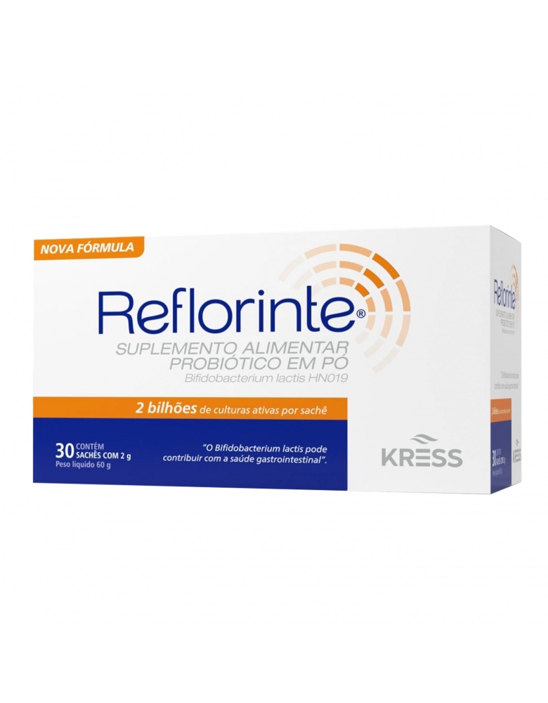 Reflorinte® é um probiótico que contém Bifidobacterium lactis, um micro-organismo presente na microbiota normal humana. É indicado para a restauração da flora intestinal, controle da diarreia e alívio da constipação. Cada sachê possui 1 bilhão de culturas ativas (109 UFC).