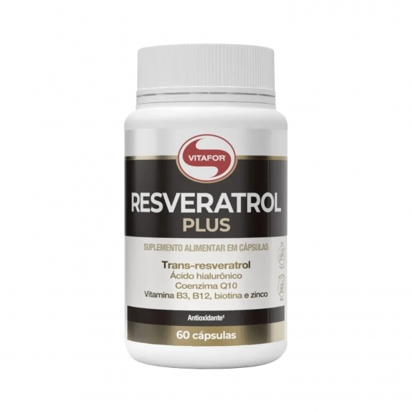 RESVERATROL PLUS é um suplemento alimentar a base de óleo de semente de uva (Vitis vinifera L.), trans-resveratrol, ácido hialurônico, coenzima Q10, vitaminas B3, B12, biotina e zinco.