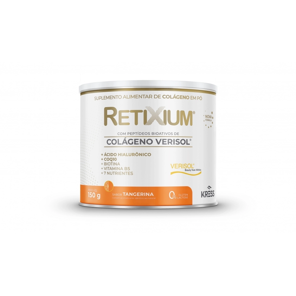 Retixium® é um suplemento alimentar com peptídeos bioativos de colágeno, associado com vitaminas antioxidantes (A, C e E) e biotina, além dos minerais cobre e zinco, específicos para a manutenção da pele, cabelos e unhas. Sua fórmula exclusiva, associa ingredientes para potencializar o resultado, desacelerar o envelhecimento e manter a jovialidade da pele. Utiliza colágeno Verisol®, importado e com diversas pesquisas que indicam sua eficiência. Seu colágeno, quebrado em micropartículas, chamados peptídeos de colágeno, garante melhor absorção e resultados.