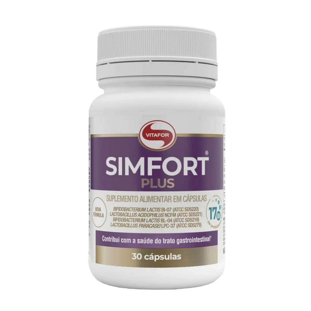 O Simfort Plus (30 Cápsulas) é um suplemento alimentar formulado com quatro cepas probióticas de alta concentração, projetado para promover o equilíbrio da microbiota intestinal e apoiar o sistema digestivo e imunológico. Cada dose oferece 17 bilhões de micro-organismos vivos, distribuídos entre cepas como Lactobacillus acidophilus, Bifidobacterium lactis e Lacticaseibacillus paracasei, que contribuem para a saúde gastrointestinal e bem-estar geral. O produto é vegano, não contém glúten e está disponível em cápsulas resistentes ao pH gástrico para assegurar que os probióticos cheguem vivos ao intestino.