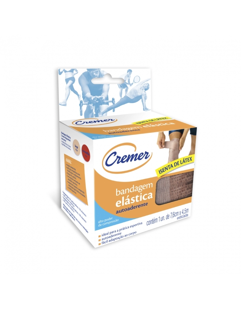 A Bandagem Elástica Cremer permite a livre transpiração da pele. Pode ser cortada facilmente no sentido transversal e é bastante elástica no sentido longitudinal. Molda-se aos contornos do corpo, garantindo conforto ao usuário, e não requer a utilização de fitas adesivas para fixação, devido a sua propriedade auto aderente.