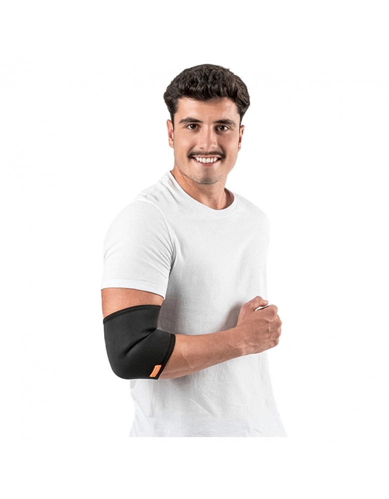 - Vista a órtese e posicione na região do cotovelo. Ajuste através das abas com fecho aderente no plush do produto com compressão adequado ao seu conforto.