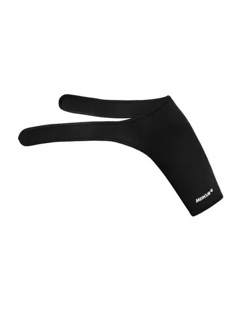 Pode ser utilizado no ombro direito ou esquerdo, é confeccionado em Neoprene®, que mantém a região aquecida, e é ajustável por fecho aderente.