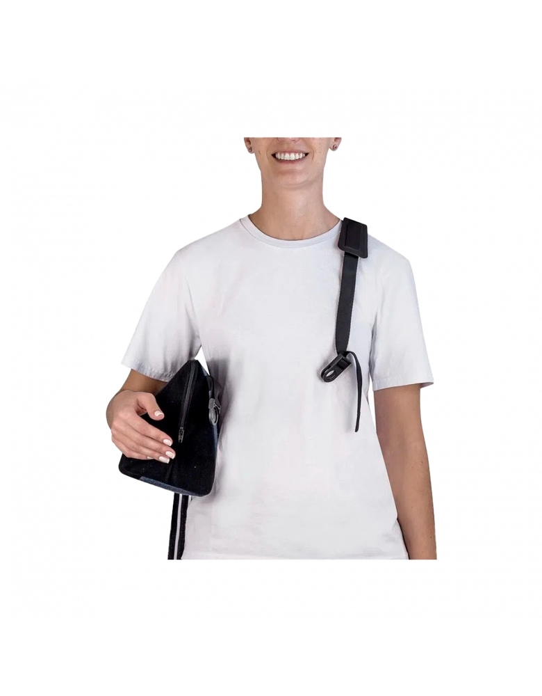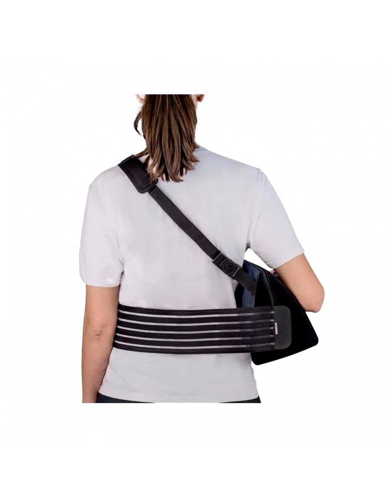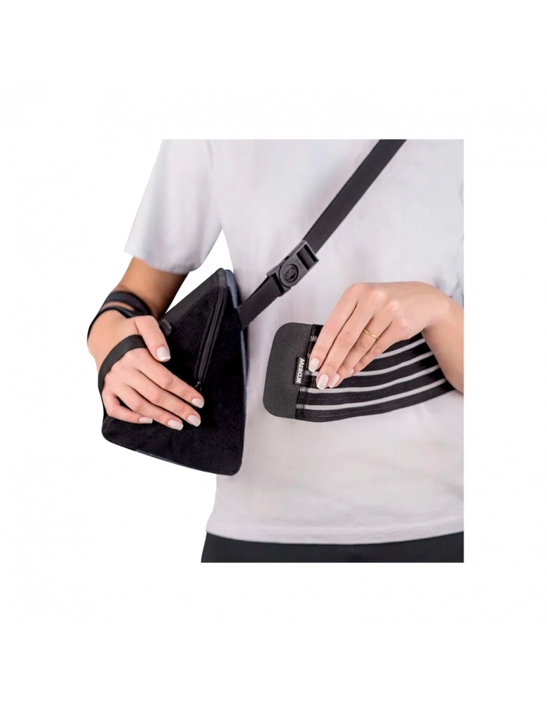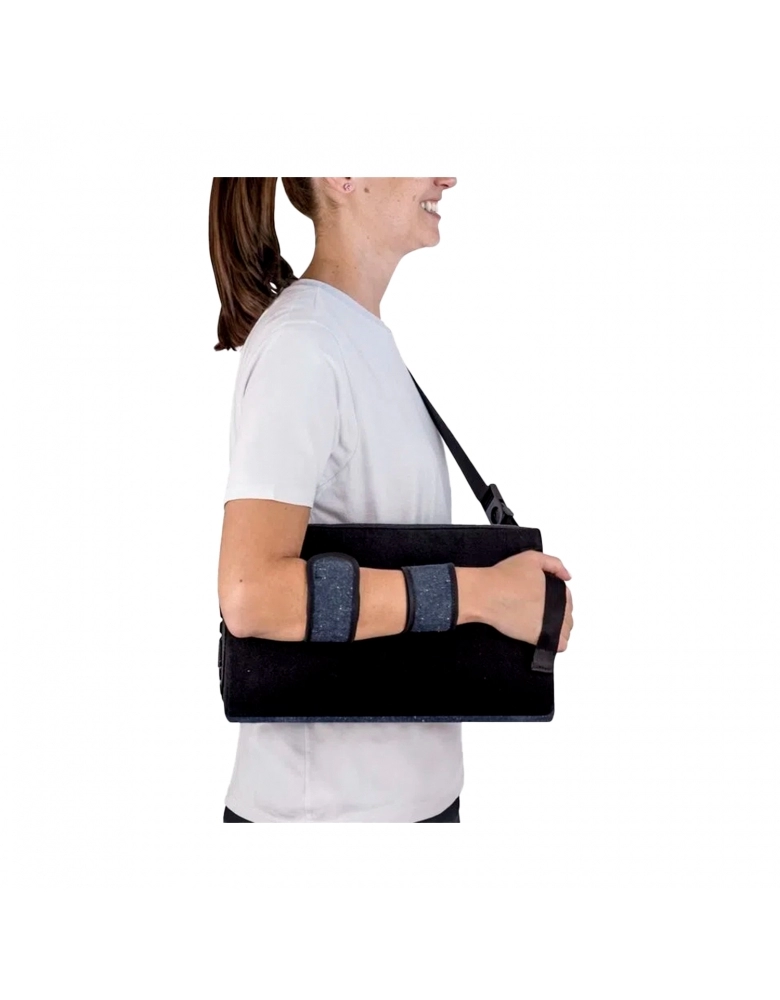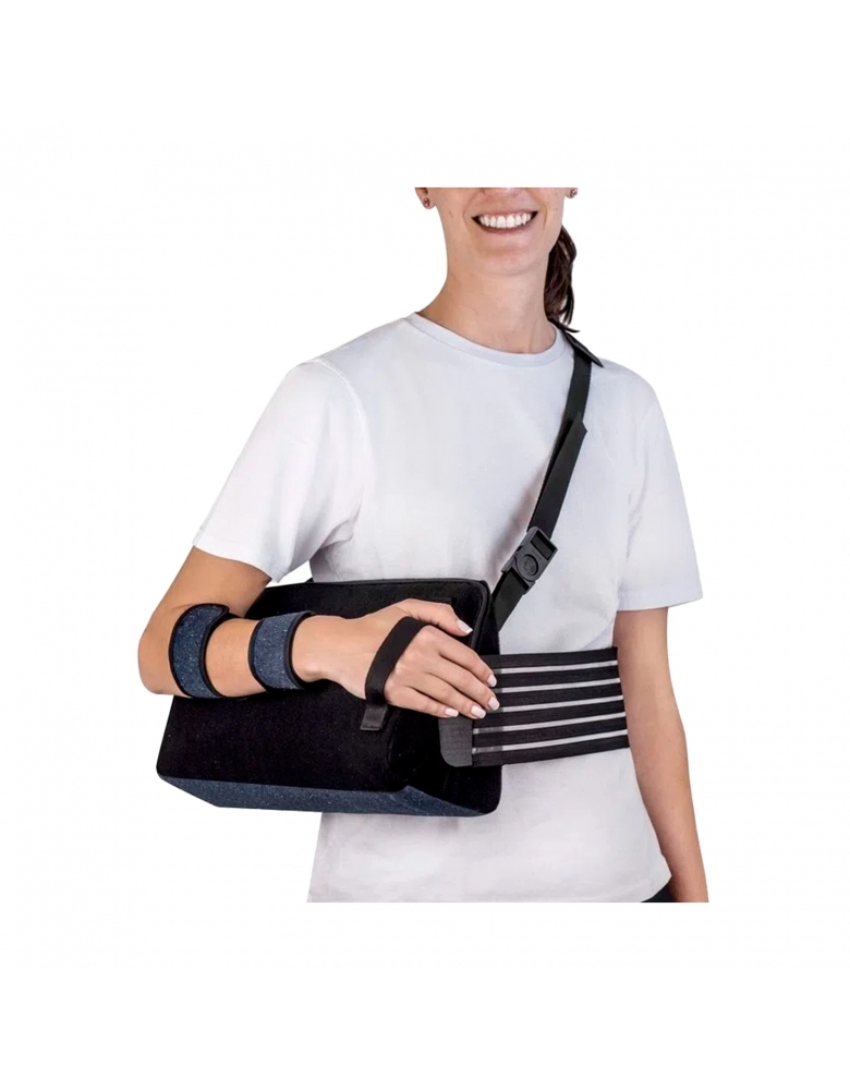 Promove o posicionamento do ombro em um ângulo de 30° para casos de pós-operatórios de lesões no membro superior. O recurso possui design ergonômico com sistema de fixação ajustável para o antebraço, permitindo que, quando necessário, o usuário mova o cotovelo, punho e mão sem comprometer a estabilização do ombro. Além disso, a fixação do antebraço é feita através de tiras, o que reduz a percepção de calor do usuário. A almofada de abdução (coxim) contém capa lavável, é leve e tem formato anatômico para oferecer conforto. O produto é bilateral, podendo ser usado no braço direito ou esquerdo, e parte de sua confecção é feita com tecido reciclado.
