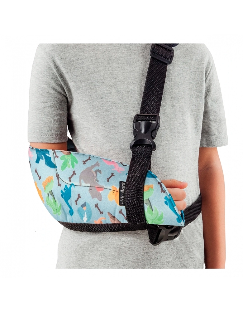 A Tipoia Imobilizadora Infantil Dinossauro Hidrolight é indicada para imobilização da clavícula e braço, sustentação do membro com instabilidade da artrite reumatoide, fratura do colo do úmero e cotovelo, contusões, luxações, sequelas de AVE e pós-operatório e apoio para gesso.