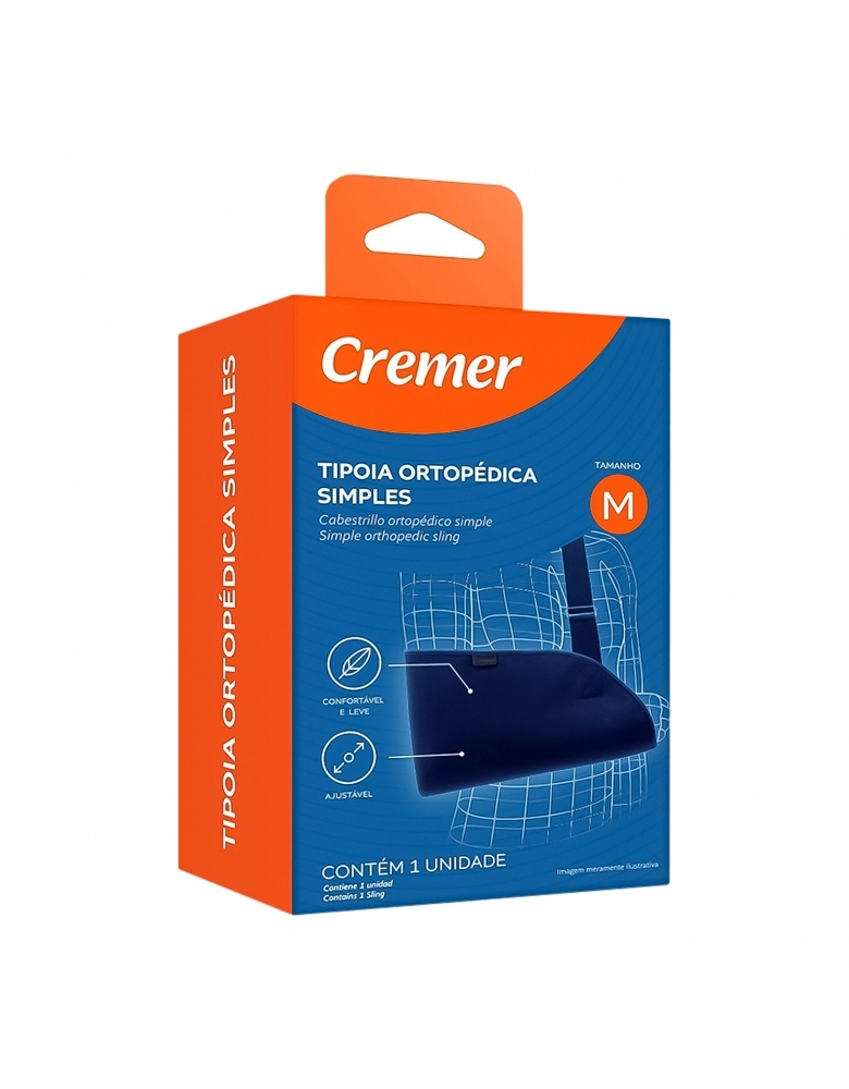 A Tipoia Ortopédica Simples Cremer oferece estabilidade e conforto na recuperação de lesões do membro superior (ombro, braço e antebraço). Pode ser usada nos braços direito ou esquerdo. Serve de apoio para o gesso.