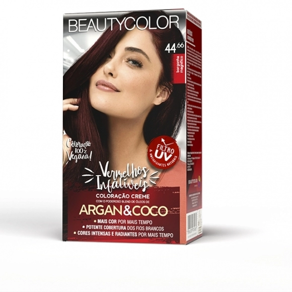 A linha vermelhos infalíveis da Beautycolor oferece uma potente cobertura dos fios brancos com cores intensas, além de retenção 65% maior da cor e tempo de duração muito maior.