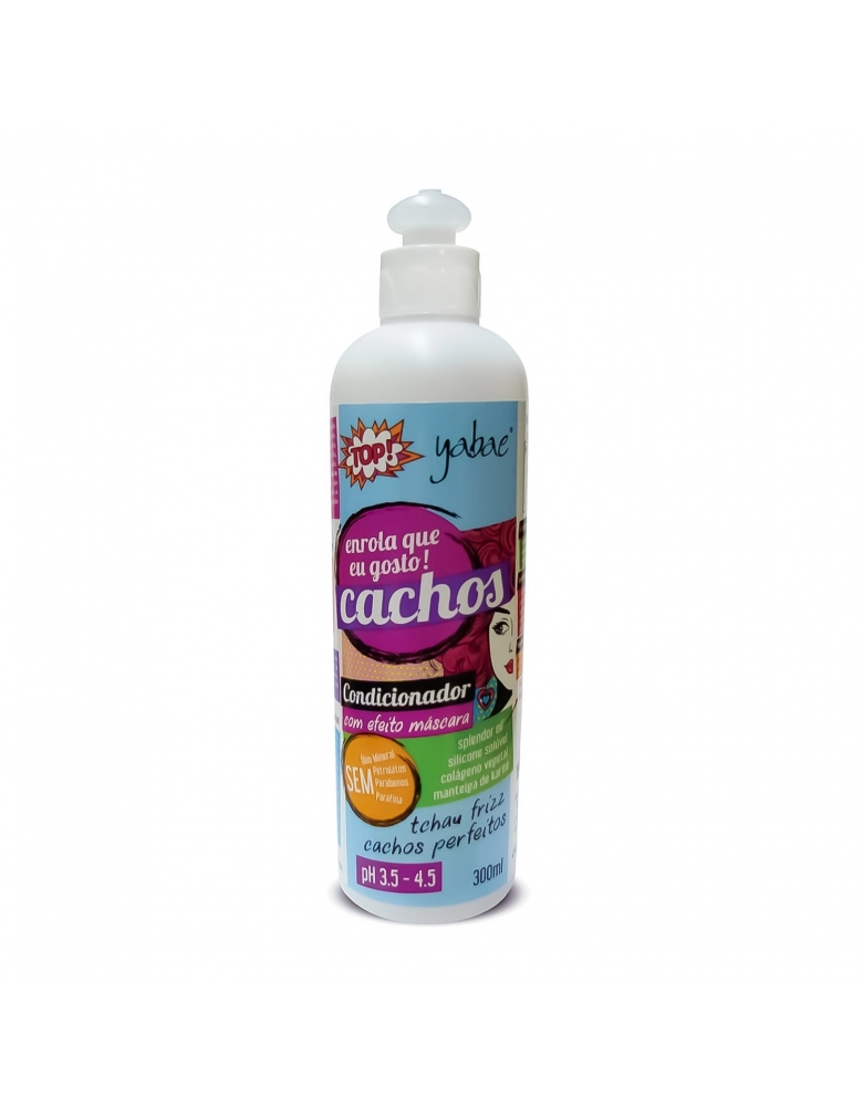 A linha Yabae Cachos, veio com tudo para hidratar os cabelos profundamente, sem deixá-los pesados ou sem movimento. São produtos certos para conquistar os cachos perfeitos, leves e flexíveis. O Condicionador com Efeito Máscara Yabae Cachos condiciona e amacia os fios, oferecendo brilho e desembaraço perfeito aos cabelos. Possui em sua composição Colágeno Vegetal, Manteiga de Karité e Splendor Oil, um blend de óleos exóticos que somam força para deixar os cabelos hidratados e repõem os nutrientes perdidos nos processos químicos e nas agressões do dia a dia.
