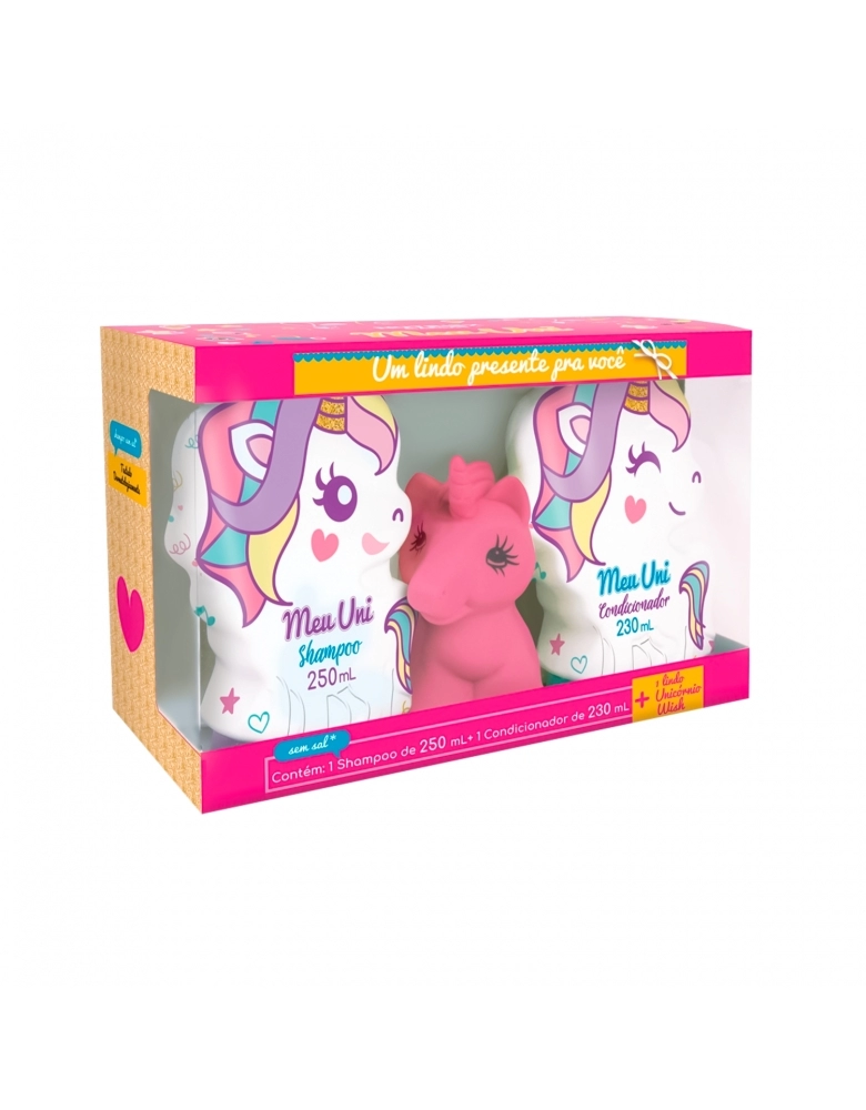 O Shampoo Meu Uni contém uma exclusiva fórmula que não agride os cabelos e higieniza delicadamente. Com extrato natural fortifica os cabelos e deixa-os com um perfume irresistível. Com o uso do Condicionador Meu Uni você potencializa o resultado do shampoo sem agredir o couro cabeludo, pois a Linha Meu Uni é testada dermatologicamente e pode ser usada diariamente.