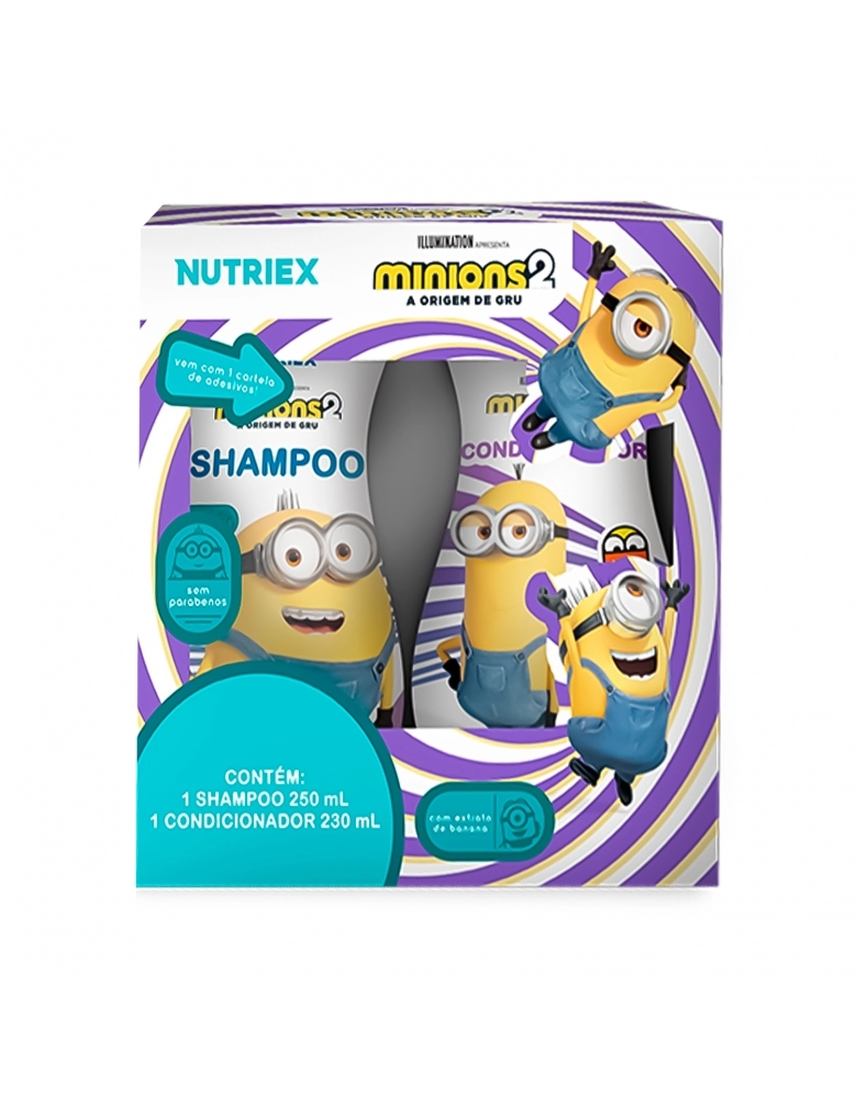 KIT MINIONS SHAMPOO 250ML + CONDICIONADOR 230ML + ADESIVOS NUTRIEX
