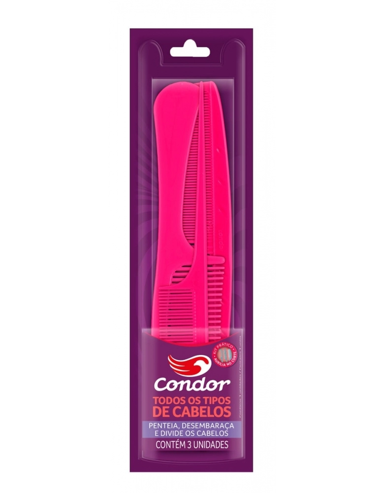 O KIT PENTE CONDOR JOY é a solução ideal para quem busca acessórios de alta qualidade para o cuidado e estilização dos cabelos. Composto por três unidades, este kit oferece uma variedade de pentes que se adaptam a diferentes necessidades, desde desembaraçar até modelar. Fabricados com materiais duráveis, os pentes garantem um deslizar suave pelos fios, minimizando a quebra e danos. Ideal para uso em casa ou em salões, esse kit é uma excelente escolha para profissionais e amantes da beleza que valorizam produtos práticos e eficientes.