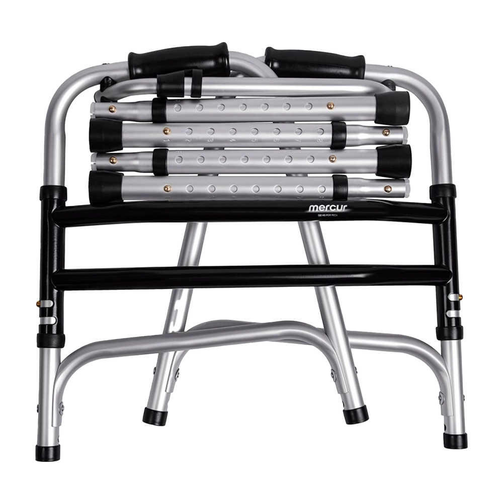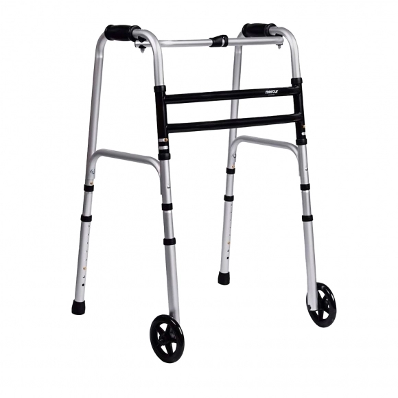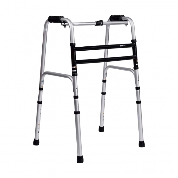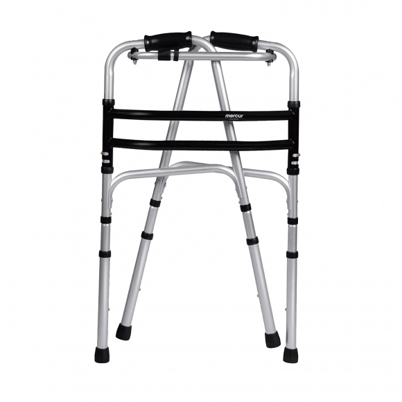 Antes de começar a andar com o apoio do andador, recomendamos que um profissional da saúde faça os ajustes de altura e oriente quanto ao deslocamento com segurança e certifique-se que o andador está totalmente aberto.