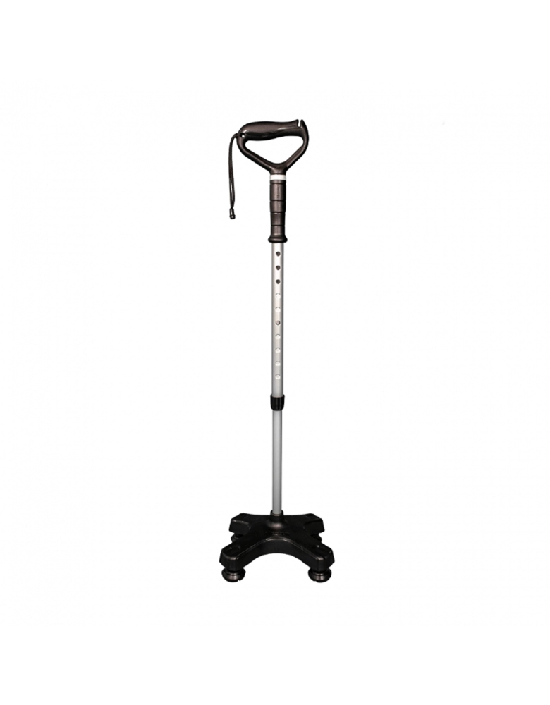 A Bengala 4 Pontas com Apoio foi desenvolvida para auxiliar pessoas com mobilidade reduzida, proporcionando apoio e estabilidade para prevenir quedas durante a caminhada. O recurso é resistente, leve e possui apoio de mão com cantos arredondados e design ergonômico, que contribui para melhor distribuição da pressão palmar e proporciona conforto durante o uso. O dispositivo conta com 10 níveis de ajuste de altura, alça para punho e suporte para apoiar pequenos objetos. A bengala contém base de apoio ampliada, com 4 ponteiras flexíveis que oferecem melhor aderência ao solo, gerando estabilidade e segurança ao caminhar.