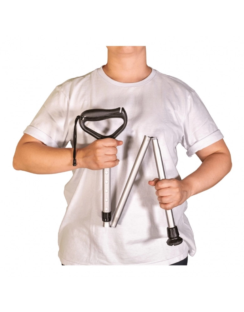 A Bengala Dobrável foi desenvolvida para auxiliar pessoas com mobilidade reduzida, proporcionando apoio e estabilidade para prevenir quedas durante a caminhada. O recurso é resistente, leve e possui apoio de mão com cantos arredondados e design ergonômico, que contribui para melhor distribuição da pressão palmar e proporciona conforto durante o uso. O dispositivo é prático, podendo ser dobrado para guardar ou transportar quando não estiver em uso e conta com 6 níveis de ajuste de altura, alça para punho e suporte para apoiar pequenos objetos. A bengala contém ponteira flexível com ranhuras que reduzem o risco de deslize em pisos com acúmulo de líquido e sinalizador de desgaste, o que oferece uma passada mais natural e segura ao caminhar.