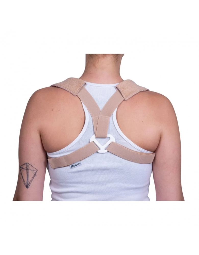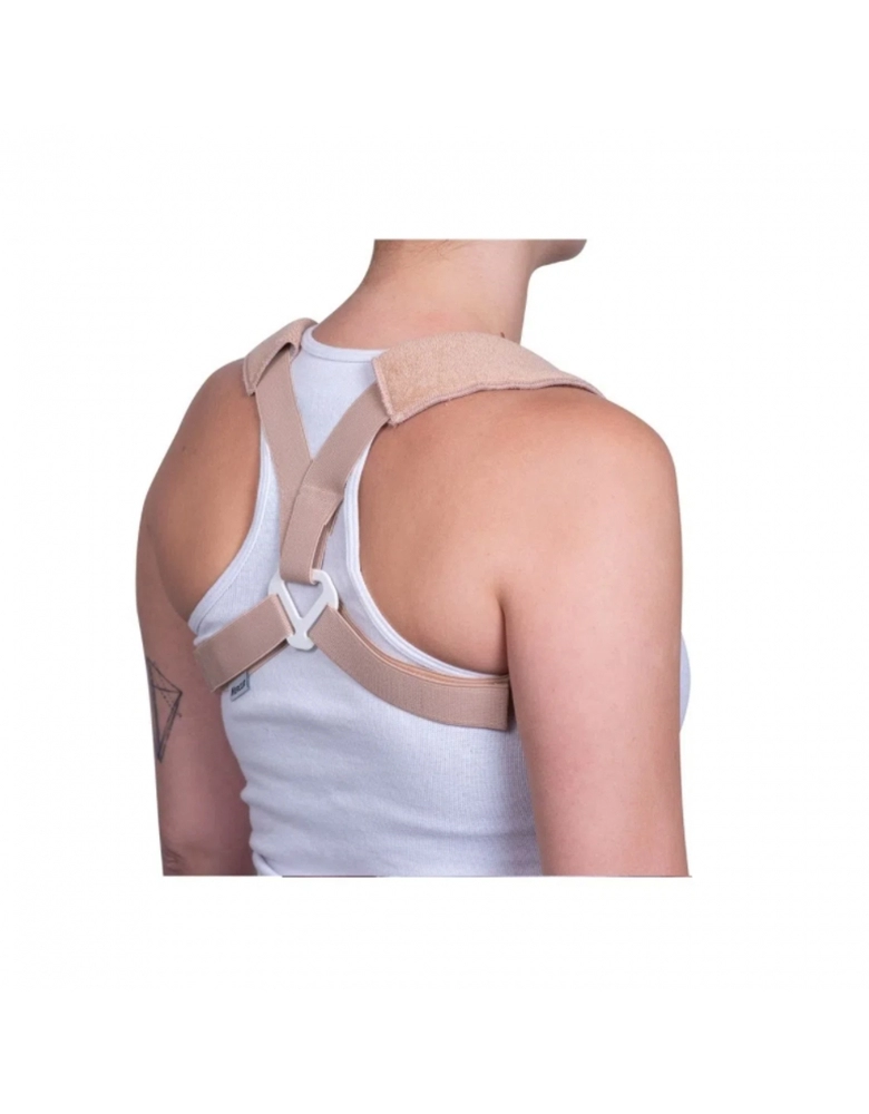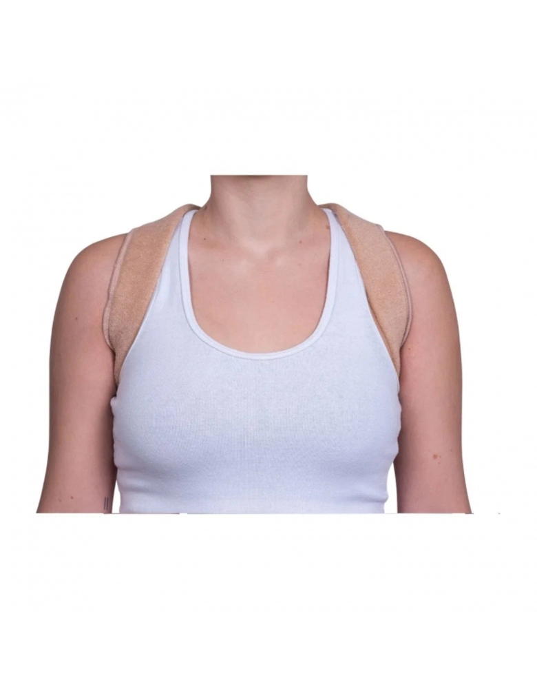Confeccionado em elástico, com fechamento traseiro por fechos aderentes, possui almofadas axilares revestidas em algodão, proporcionando conforto ao usuário. O corretor pode ser utilizado diretamente sobre a pele ou sobre a roupa. Auxilia na reeducação e na manutenção postural, tratando dores e desconfortos na região das costas e dos ombros.