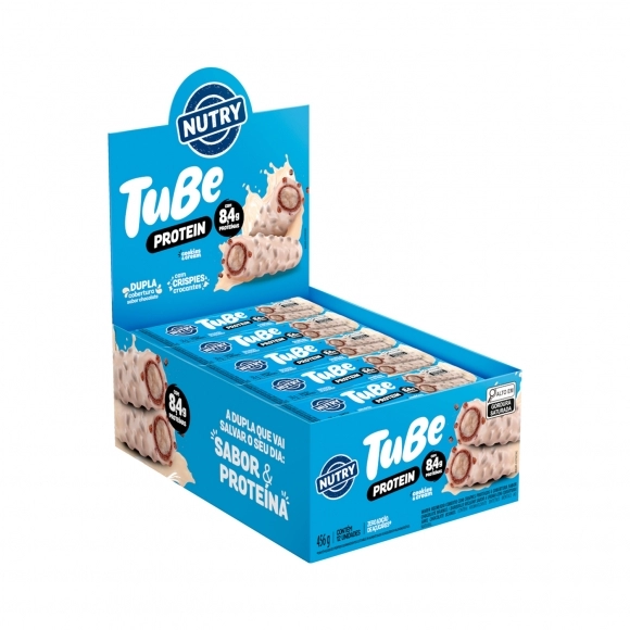 Descubra a experiência única do Nutry Tube Protein! Cada embalagem vem com 2 tubos de wafer crocantes, recheados com um creme irresistível e, o melhor de tudo, zero açúcar e com 8,4g de proteína em cada porção.