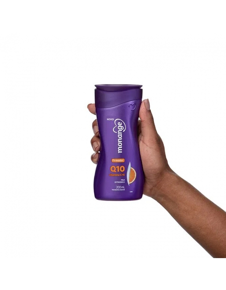 O novo Hidratante Monange Firmador Q10 com Ação Desodorante e vitamina C e E aumenta o colágeno da pele, possui ação antissinais e previne a flacidez. Dermatologicamente testado, o produto já começa a dar resultados em até 2 semanas de uso constante, recomenda-se que ele seja aplicado 2 vezes ao dia. Além disso, com ativos provenientes da laranja, o hidratante nutre até a segunda camada da derme, possui uma textura cremosa e é indicado para pele secas