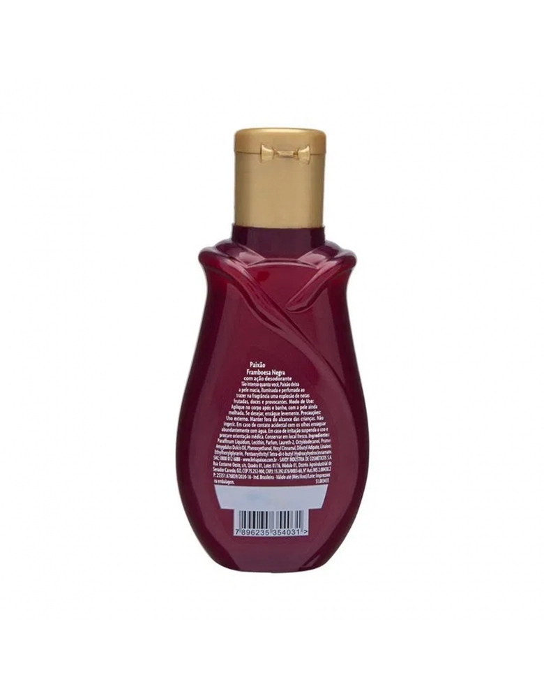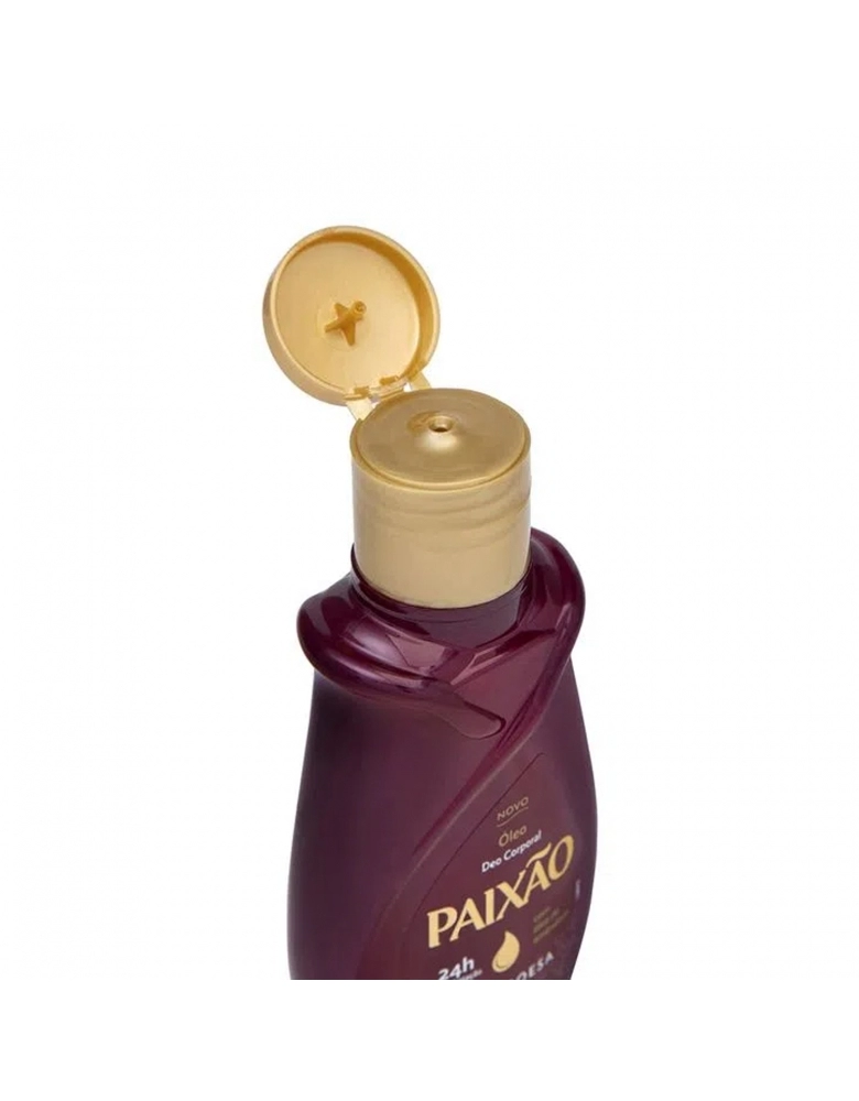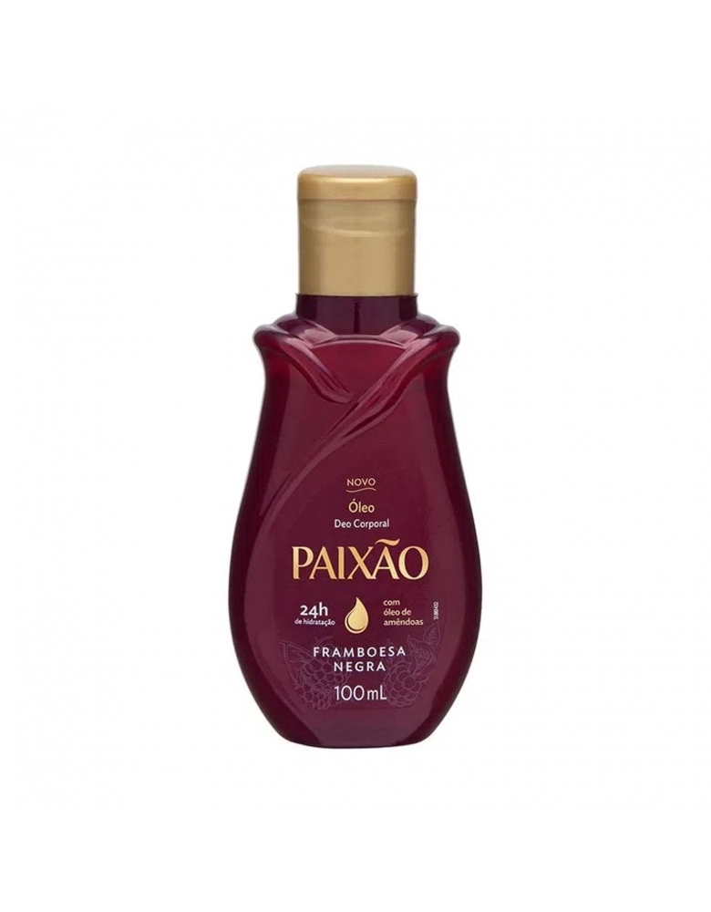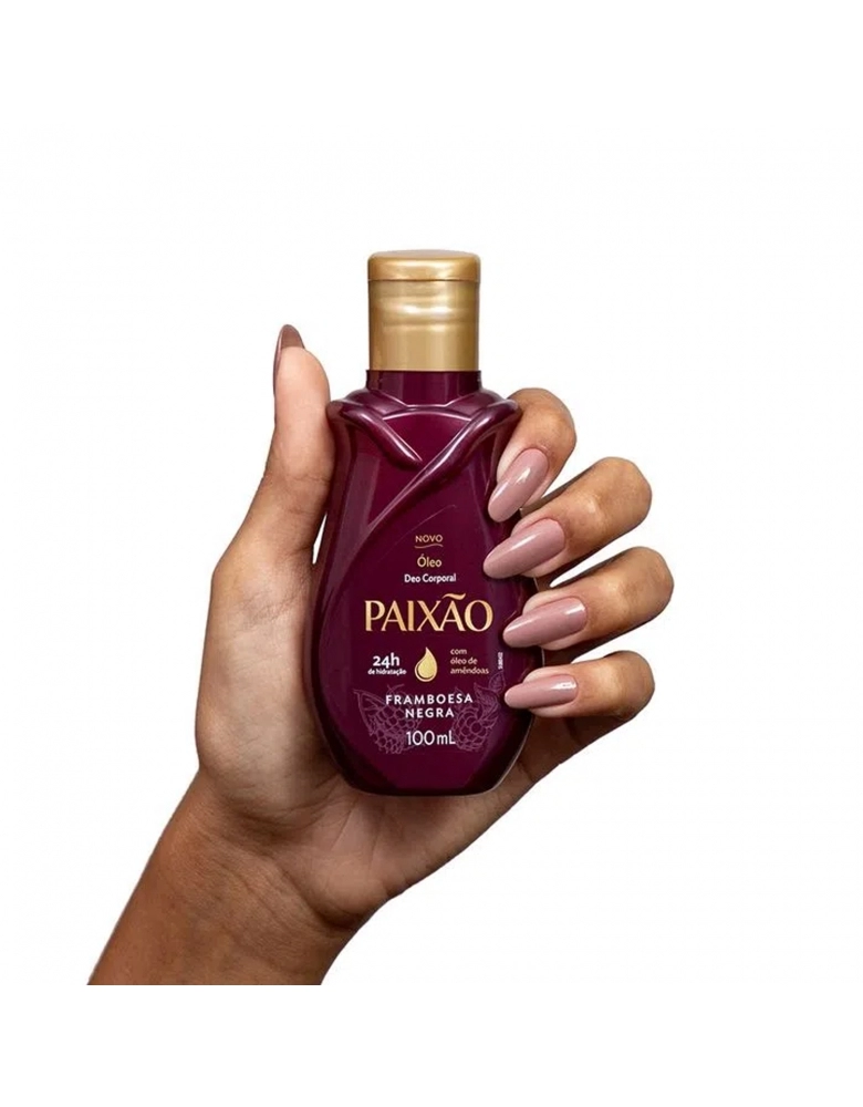 O Óleo Corporal Paixão com ação desodorante possui óleo de amêndoas que vai garantir hidratação por até 24horas. Sua aplicação deve ser feita logo após o banho, com a pele ainda molhada e se desejar, pode enxaguar levemente ou não. De uso diário, é recomendado para todos os tipos de pele. Sua fragrância tem notas de framboesa negra, morango e ameixa que formam um delicioso aroma de fruta madura. Notas de fundo de caramelo, marshmallow, baunilha e notas talcadas.