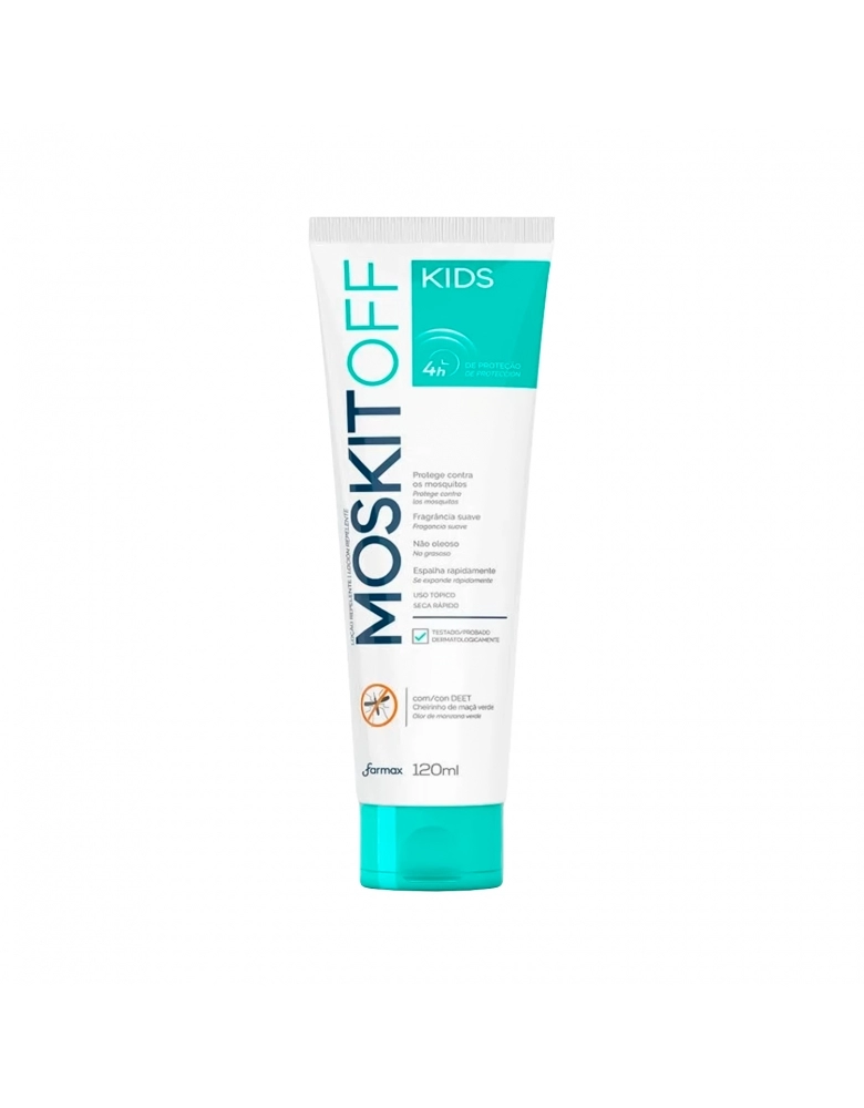 A loção repelente Kids Moskitoff foi desenvolvida para proteger a pele das crianças contra os transmissores doenças, como o mosquito da dengue, e também afasta pernilongos e borrachudos. A aplicação é fácil e a pele absorve o produto rapidamente. O Repelente Kids em Bisnaga Moskitoff tem em sua composição ativos que afastam os transmissores de doenças por até 4 horas e hidratam a pele enquanto agem na proteção infantil.