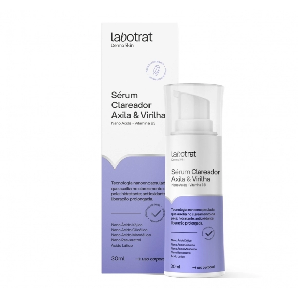O Serum Clareador Labotrat é rico em ativos clareadores da pele como o nanoresveratrol e o blend de ácidos kójico, mandélico, lático, glicólico e cítrico, todos em nanocápsulas, que também aceleram a renovação celular e promovem a uniformização do tom da pele. A nanotecnologia desses ativos proporciona sua ação prolongada na pele, com liberação gradual e demorada. Possui também a Vitamina B3, que fortalece a defesa natural da pele; romã, que é potente antioxidante; além da lecitina, que hidrata a pele, deixando um toque macio e aveludado.