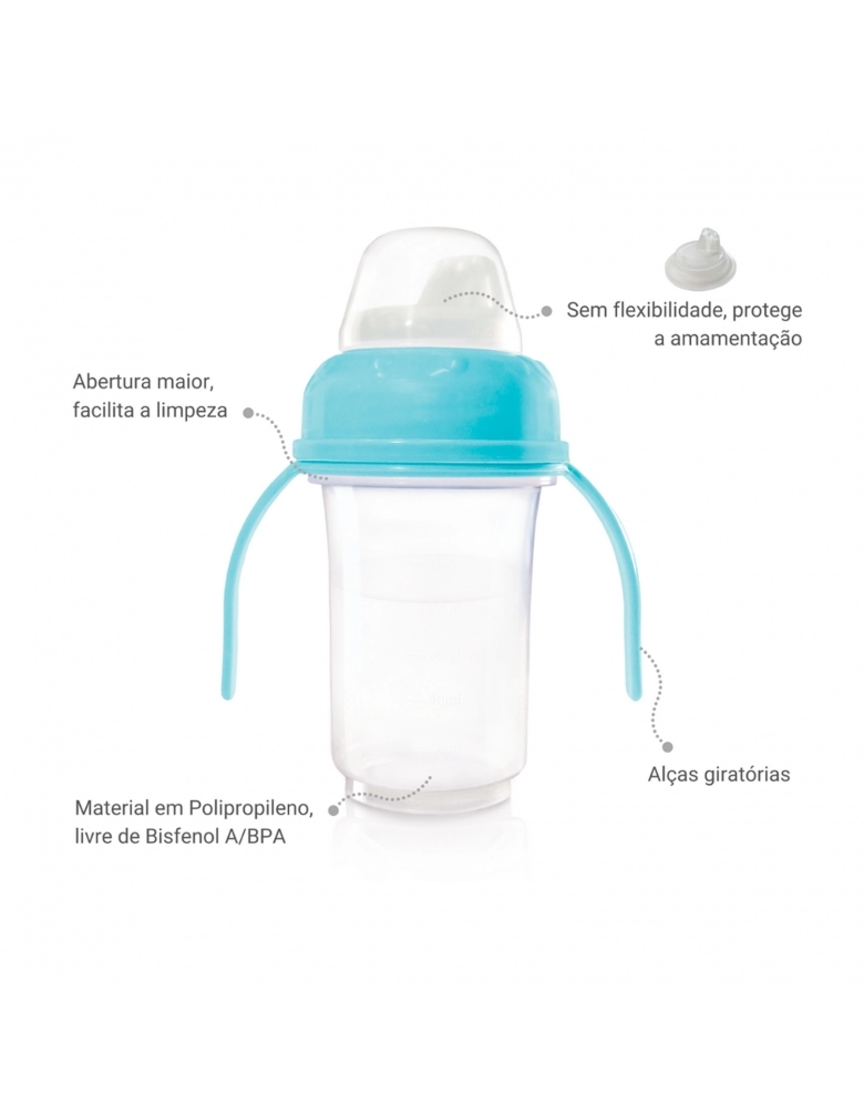 O Mamatube é um copo facilitador de amamentação e introdução alimentar que oferta leite materno na ausência da mãe (sucos e suplementos também). Ele tem uma ponta de sucção adequada para proteger a amamentação e vem com alças giratórias para o bebê segurar.