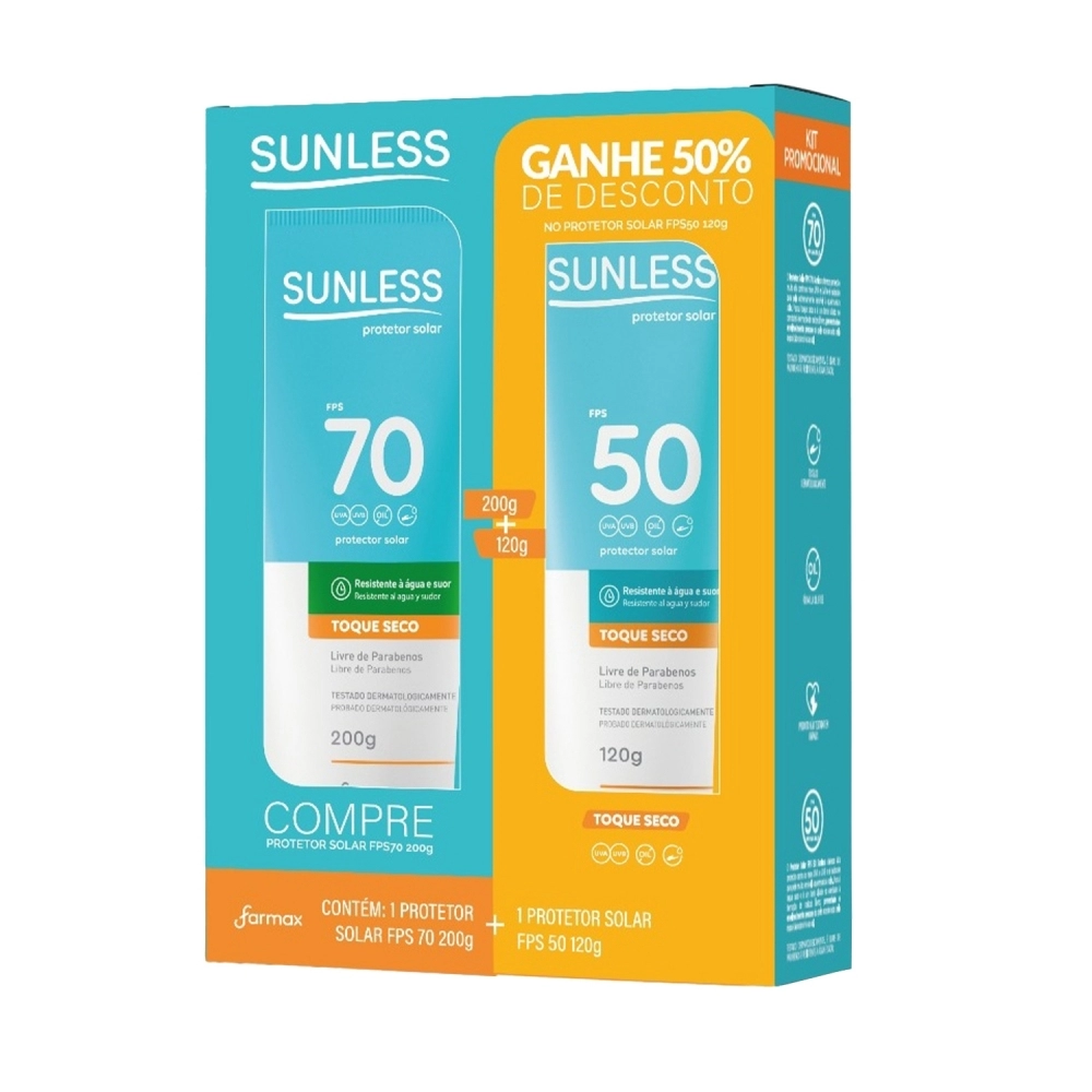 KIT PROMOCIONAL PROTETOR SOLAR CORPORAL FPS70 200G+PROTETOR SOLAR CORPORAL FPS50 120G SUNLESS