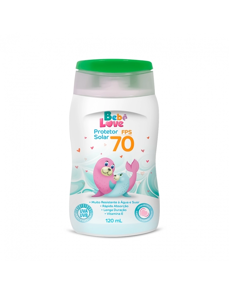 Protetor Solar Bebê Love FPS 70 oferece alta proteção contra os raios UVA e UVB e é indicado para pele extremamente sensível à queimadura solar. Sua fórmula é suave e delicada, especial para a pele sensível do bebê. Possui toque seco e é um forte aliado no combate à formação de radicais livres, prevenindo o envelhecimento precoce da pele ocasionado pela exposição excessiva ao sol. Fácil espalhabilidade, não deixa a pele esbranquiçada.