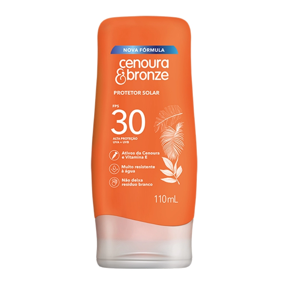 O Protetor Corporal Cenoura & Bronze FPS 30 tem textura ultraleve, rápida absorção, resistência à água e suor e não deixa resíduo branco, deixando a pele brasileira protegida e bem cuidada. Dermatologicamente Testados. Sua fórmula com Ativos da Cenoura e Vitamina E atua na proteção do colágeno ajudando a prevenir o envelhecimento e dando aquele “glow” na pele! *Proteção UVA + UVB e contra os efeitos da luz azul e da radiação Infravermelha-A.