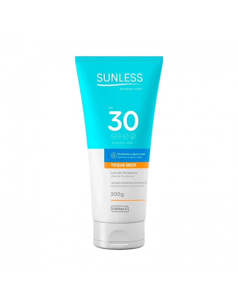 O Protetor Solar FPS 30 Sunless é fácil de espalhar e de rápida absorção. Sua composição protege a pele contra os raios UVA e UVB, combatendo a proliferação de radicais livres, que causam o envelhecimento precoce. Seu toque seco não deixa a pele com textura oleosa e sua fórmula é resistente à água e ao suor, proporcionando ação prolongada.