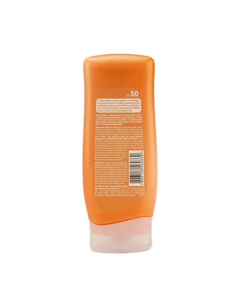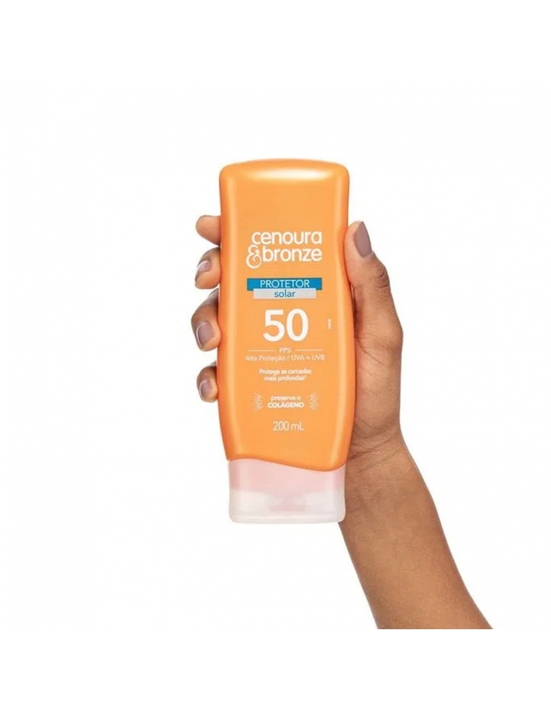 Com ativos de cenoura e vitamina E, o Protetor Solar Cenoura e Bronze FPS 50 protege 50 vezes mais do que sem sua aplicação, proporcionando alta proteção contra queimaduras solares. Além de rápida absorção, sua fórmula possui resistência à água/suor e previne contra o envelhecimento precoce, a perda de firmeza e de elasticidade, preservando o colágeno da pele. Testado dermatologicamente, o Protetor Solar Cenoura e Bronze FPS 50 protege as camadas mais profundas da pele e tem ação antioxidante, evitando vermelhidão, ardência e manchas causadas pela exposição solar.