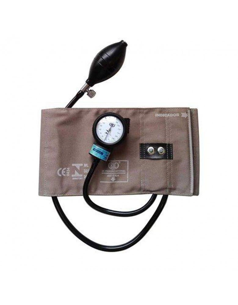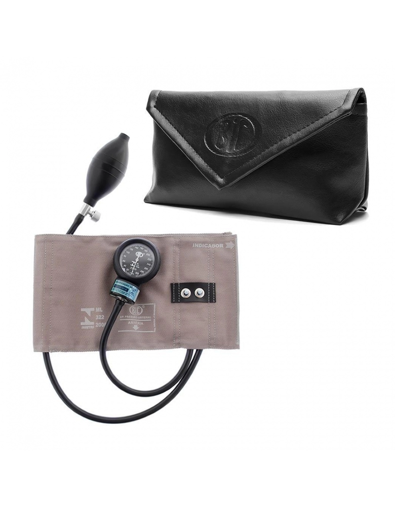 Aparelho de pressão arterial brim 100% algodão antialérgico de alta precisão e sensibilidade com sistema fecho de metal que proporciona maior praticidade e facilidade no manuseio, obtendo um melhor diagnóstico seguro e confiável, testado rigorosamente pelo controle de qualidade BIC e aferido pelo INMETRO, 100% com selo de verificação inicial, acompanha bolsa exclusiva.
