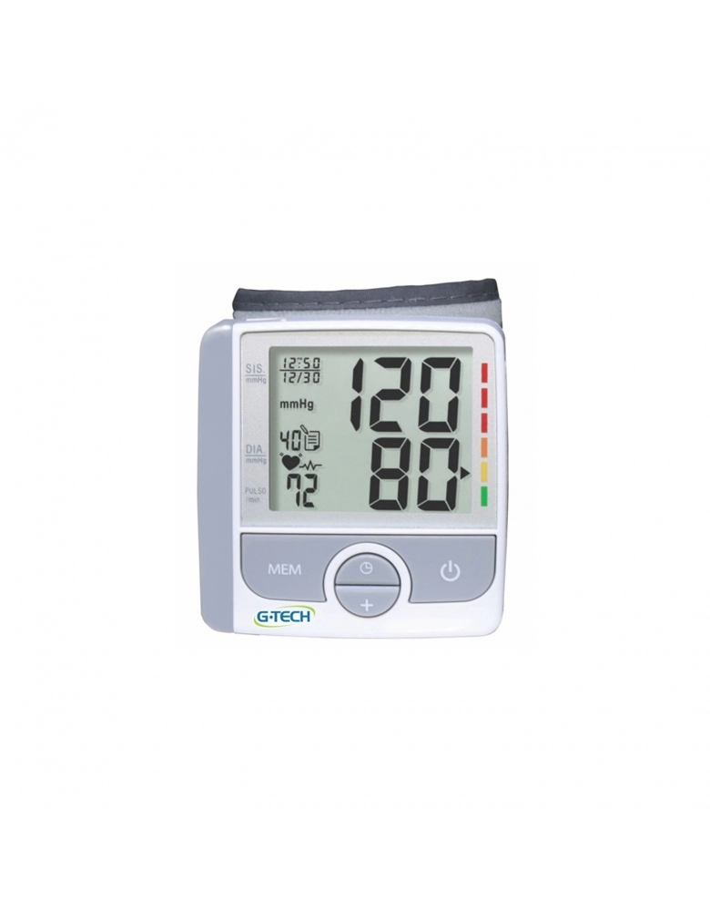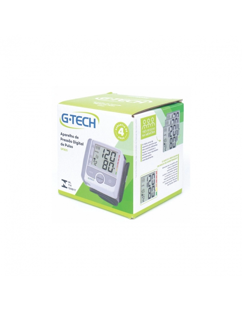 O novo aparelho de pressão digital automático de pulso GP300 G-Tech é uma solução completa para medição da pressão arterial. Além das medições tradicionais de pressão arterial e frequência cardíaca, possui uma série de outros benefícios, como: Memória para 120 resultados, com zonas independentes para três usuários, indicador de arritmia cardíaca e indicador gráfico de nível de hipertensão.