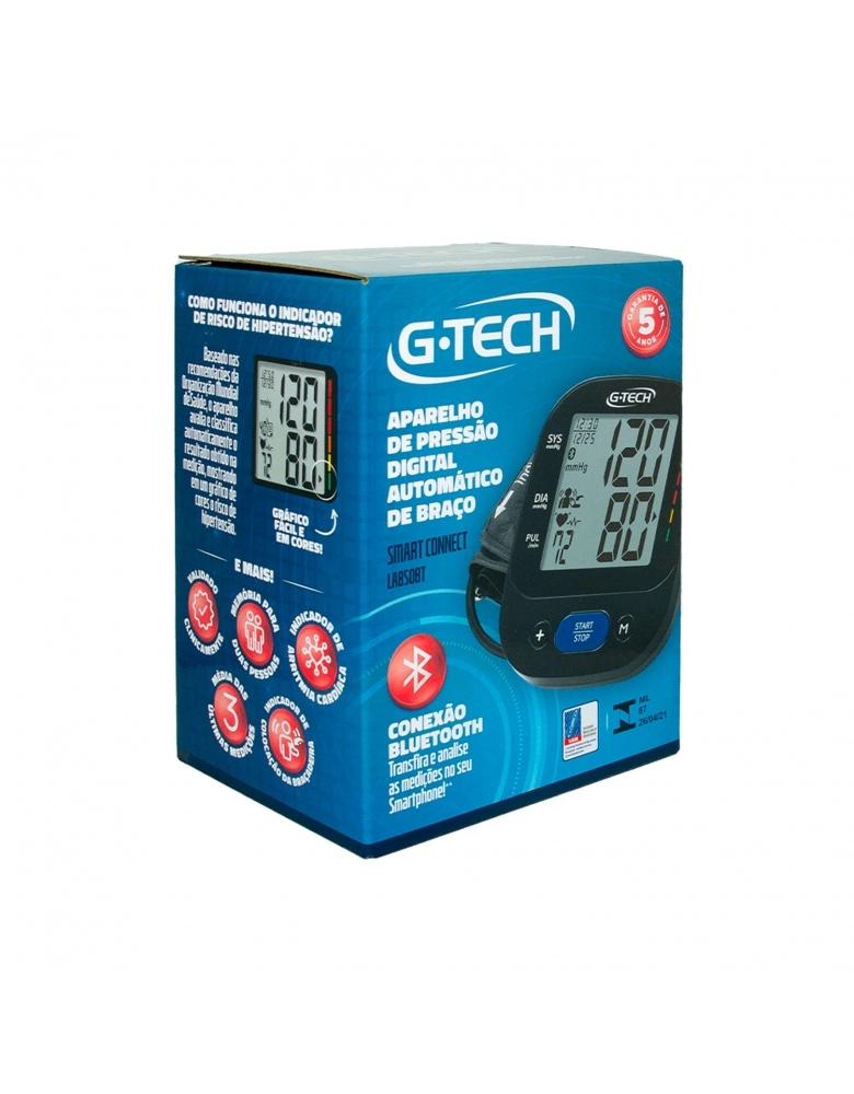 O novo Aparelho de pressão digital automático de braço G-Tech Smart Connect LA850BT é a melhor opção para quem quer ter um controle total de suas medições de pressão arterial. Além das diversas funções que auxiliam nesse controle, a conexão Bluetooth com um smartphone e o G-Tech App ampliam ainda mais as possibilidades.