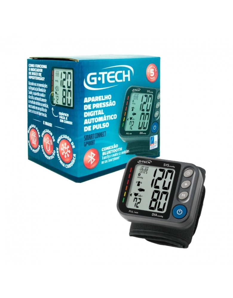 APARELHO PRESSÃO DIGITAL PULSO AUTOMÁTICO SMART CONNECT GP480 G-TECH