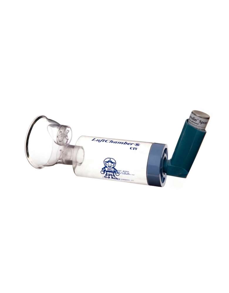 LuftChamber® é a aerocâmara mais versátil e prática no mercado. O volume da câmara de 245 ml e sistema de válvulas que combinam alta eficiência na eliminação do gás, produzindo alta concentraçao de partículas respiráveis para maior absorção dos pulmões.