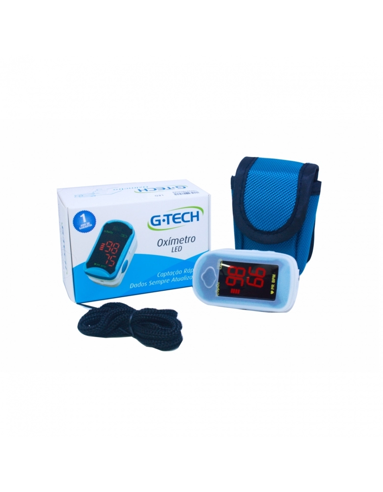 Oxímetro G-TECH LED é de alta precisão e pode ser utilizado tanto por profissionais de saúde como por pacientes no ambiente doméstico para monitorização da porcentagem de saturação de oxigênio no sangue (SpO2) e dos batimentos cardíacos por minuto.