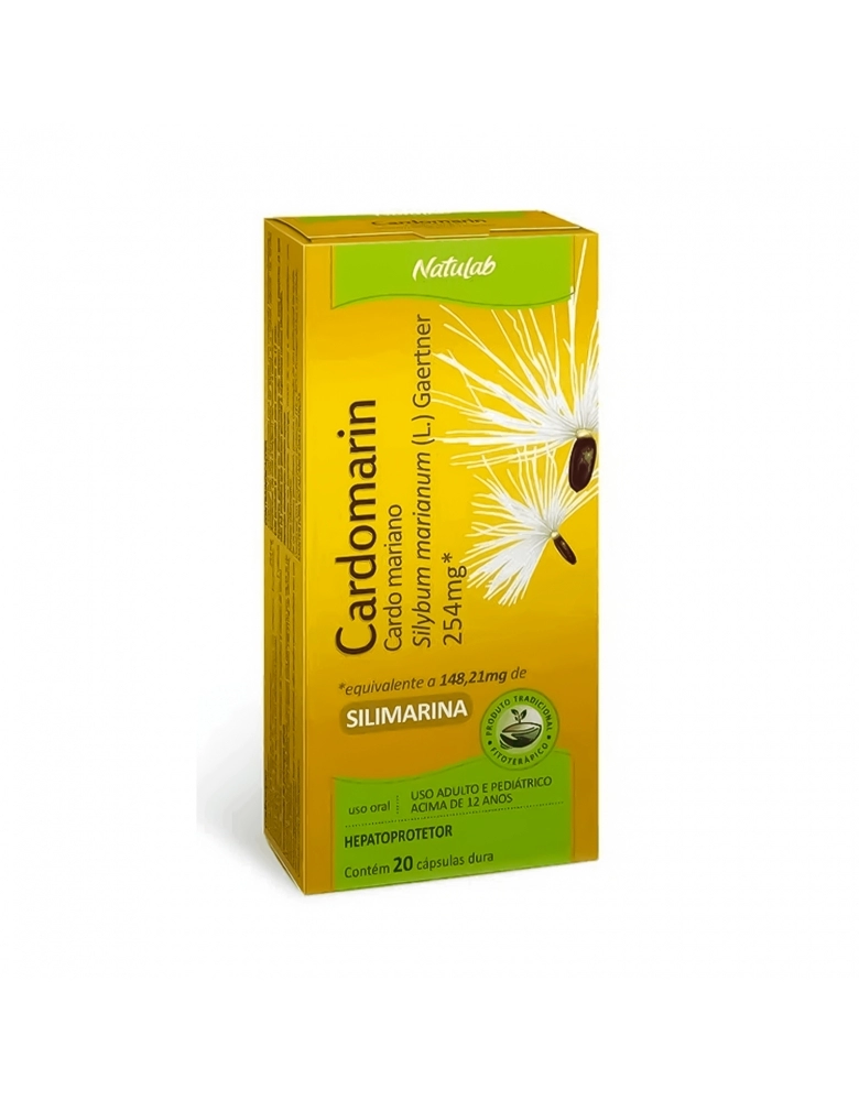 Cardomarin é indicado em casos de distúrbios digestivos e problemas de fígado. É formado pelo fitoterápico Cardo Mariano, cujo principal constituinte é a silimarina expressa em silibinina. A ação terapêutica das silimarinas ocorre de duas maneiras: além de atuar como protetor de células do fígado, estabilizando suas membranas e interrompendo a recirculação de toxinas entre intestino fígado, elas também estimulam a síntese de proteínas e são capazes de regenerar celular hepáticas danificadas.
