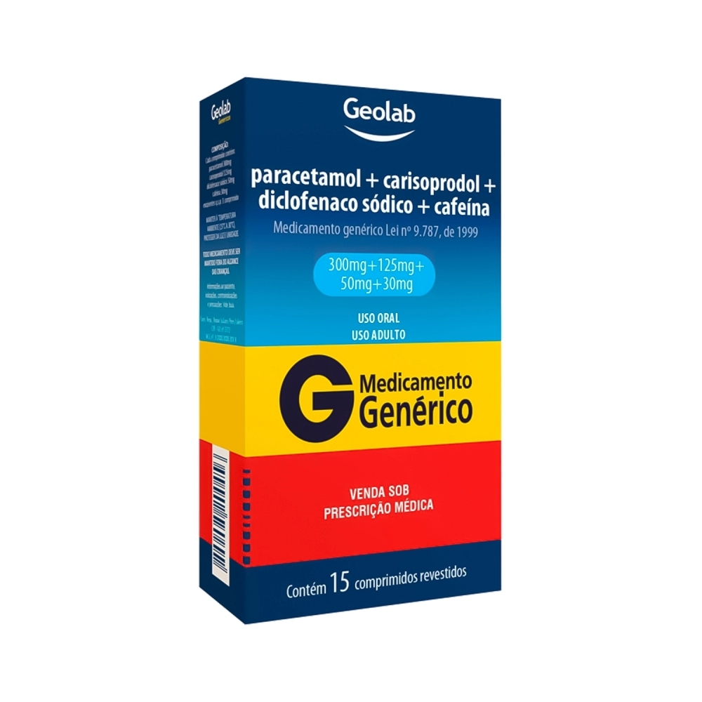 PARACETAMOL + CARISOPRODOL + DICLOFENACO SÓDICO + CAFEÍNA 15COM GEOLAB