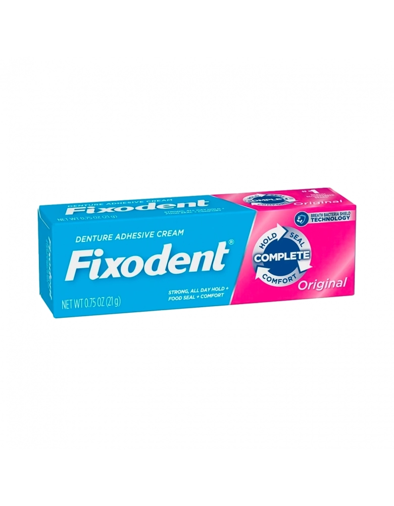 Fixodent é o Creme Fixador para próteses que diminui a irritação e o desconforto da gengiva causados pelo atrito entre a prótese e a mucosa bucal além de matar as bactérias que causam o mau hálito e ainda não interfere no sabor dos alimentos. Fixodent é marca de cremes fixadores de prótese número 1 em recomendação por dentistas nos EUA. Fixa de maneira a garantir segurança e prevenir que a comida entre entre próteses e gengivas. Perfeito para próteses parciais e completas.