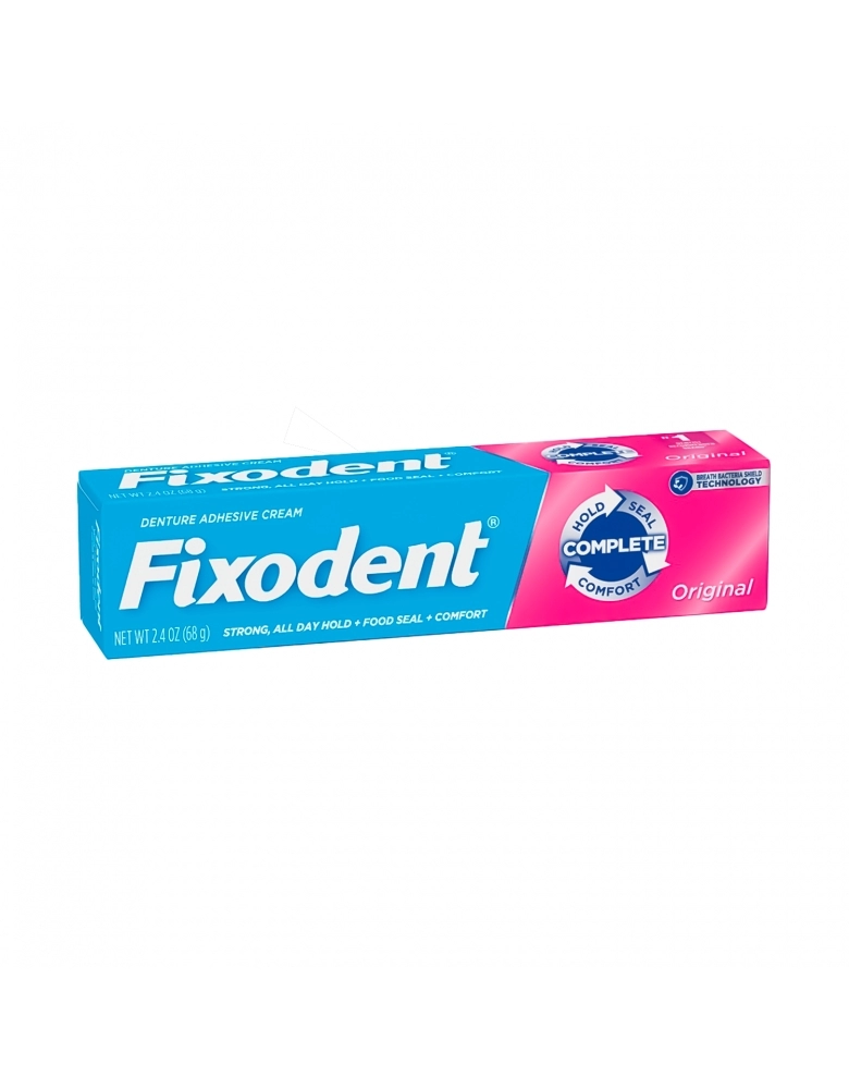 Fixodent é o Creme Fixador para próteses que diminui a irritação e o desconforto da gengiva causados pelo atrito entre a prótese e a mucosa bucal além de matar as bactérias que causam o mau hálito e ainda não interfere no sabor dos alimentos. Fixodent é marca de cremes fixadores de prótese número 1 em recomendação por dentistas nos EUA. Fixa de maneira a garantir segurança e prevenir que a comida entre entre próteses e gengivas. Perfeito para próteses parciais e completas.