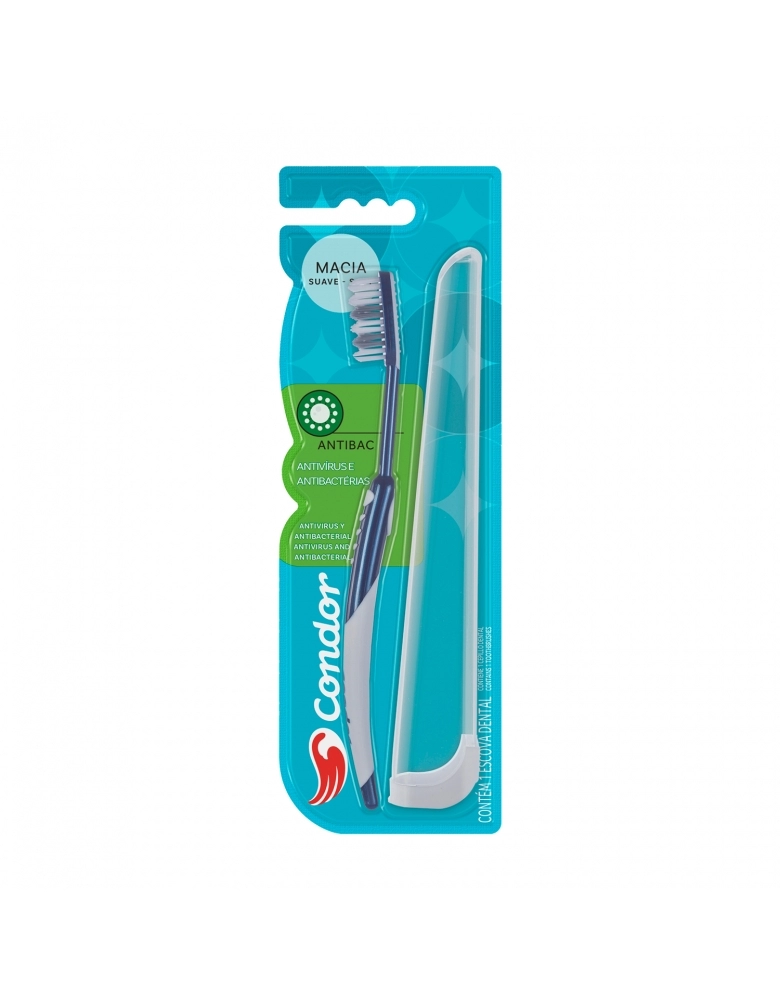 ESCOVA DENTAL ANTIBACTERIANA COM ESTOJO MACIA CONDOR