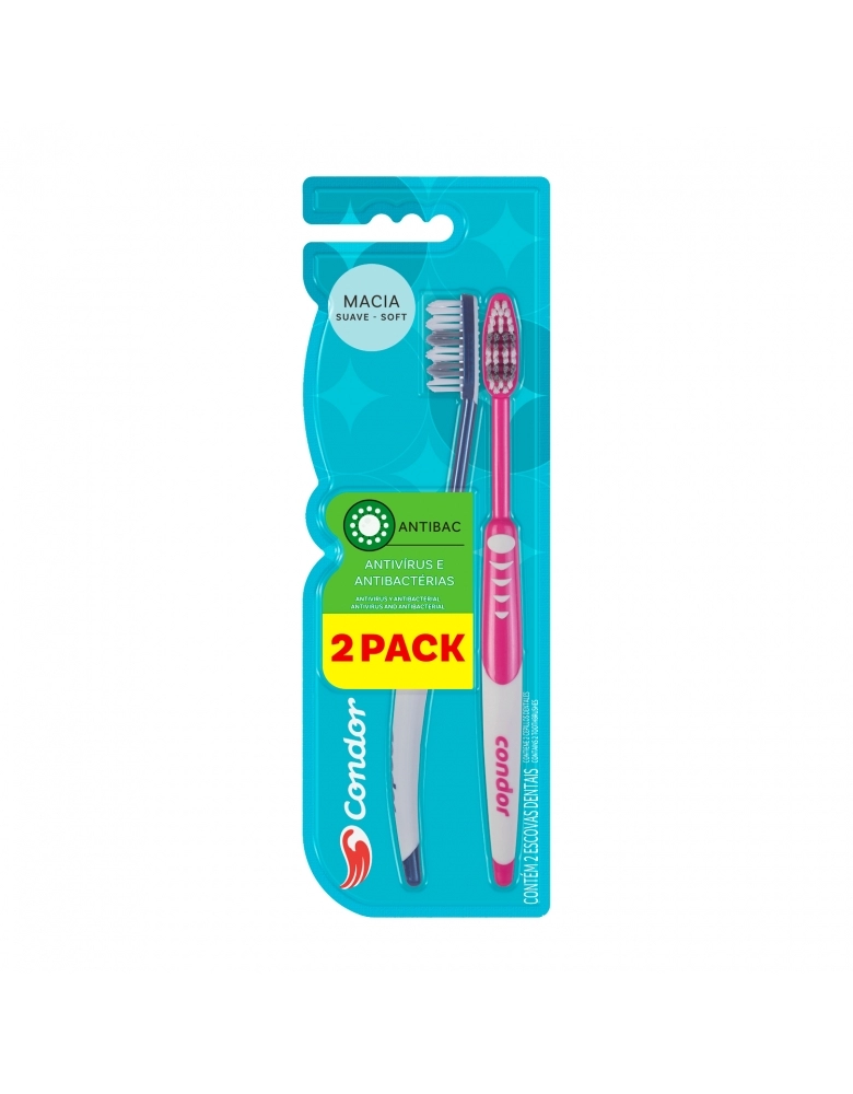 ESCOVA DENTAL ANTIBACTERIANA MACIA C/2 CONDOR