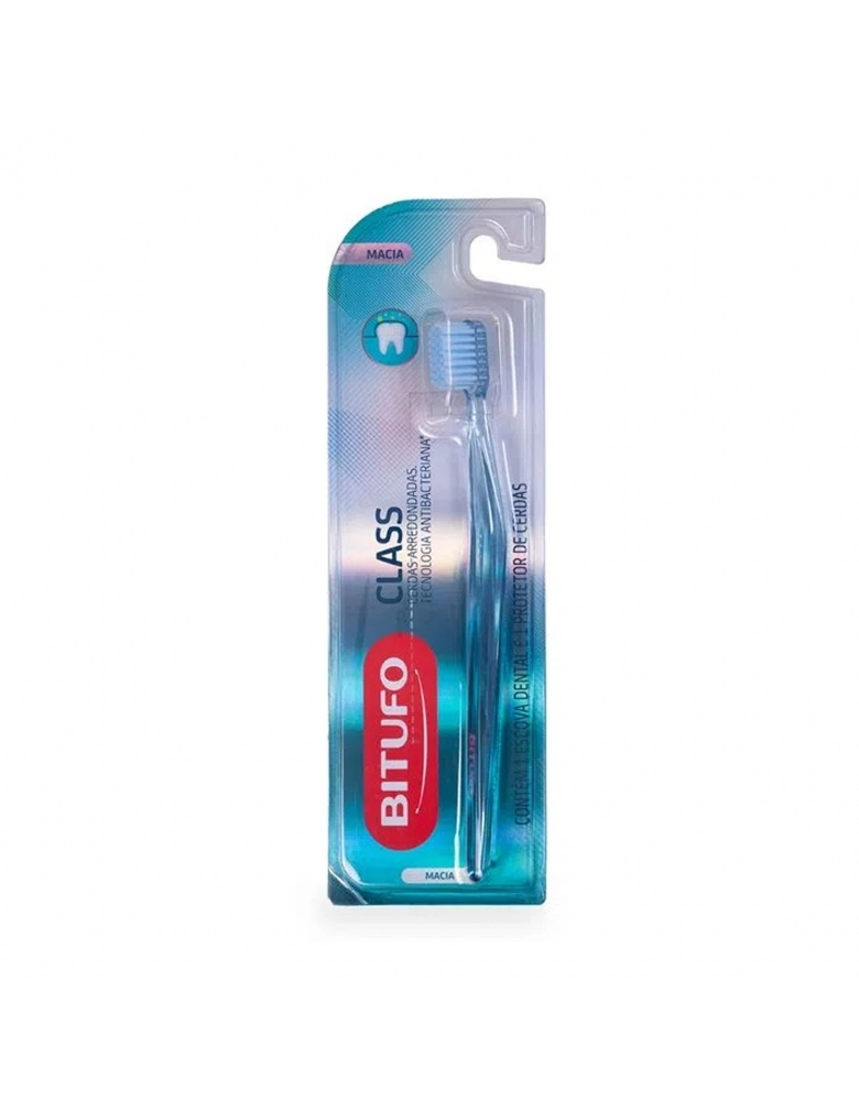 Escova de Dente Bitufo Class possui tufos concentrados que proporcionam limpeza eficaz devido ao contato das cerdas macias nos dentes. Além disso, tem tecnologia antibacteriana que inibe a proliferação das bactérias. A cabeça é compacta e ligeiramente inclinada para escovação no ângulo correto. Esse produto contém 1 protetor de cerdas. Atenção: esse produto possui as cores sortidas e a escolha é feita aleatoriamente no momento do envio do pedido. Disponível em rosa, roxo, azul e cinza, com protetor transparente.