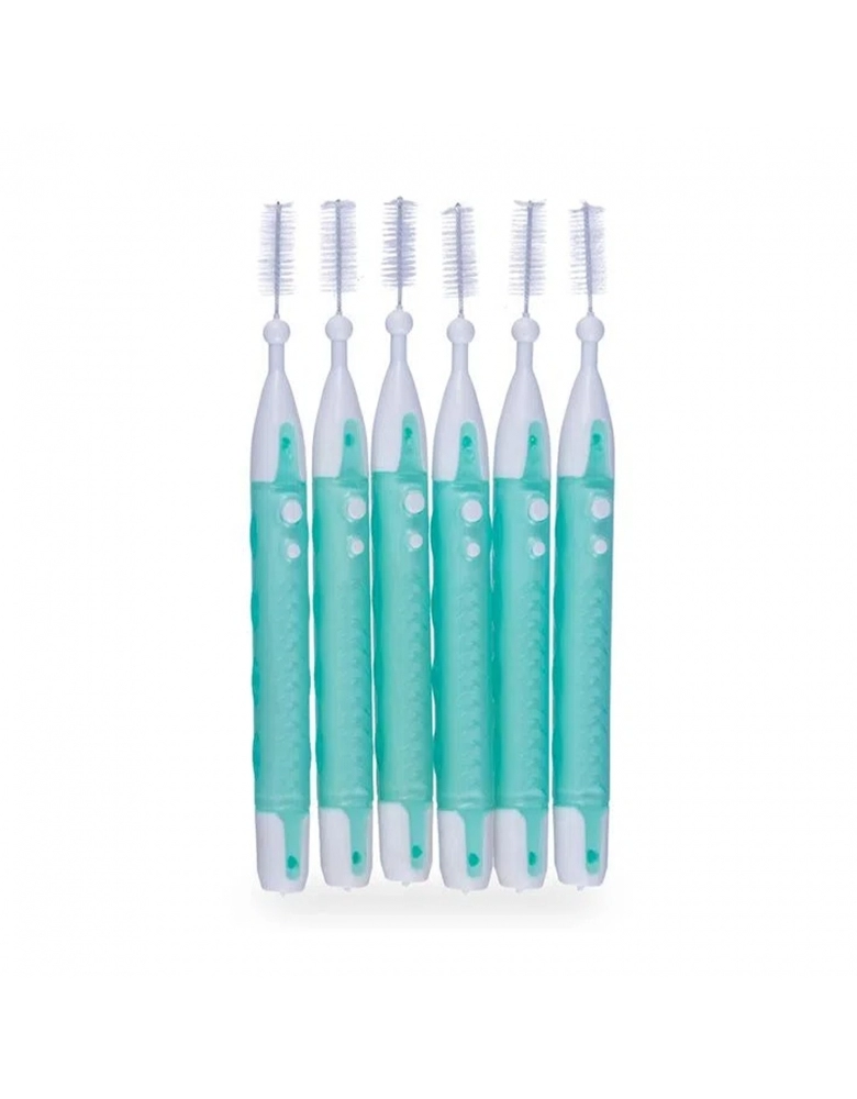 Escova Interdental Bitufo Interclean é eficiente na limpeza entre os dentes, espaços entre braquetes, pontes e próteses fixas, onde a escova convencional não chega. O ângulo da escova se ajusta dobrando-se o cabo e com movimentos suaves de vai e vem, irá auxiliar a redução da placa bacteriana e previne problemas nas gengivas. Escovação completa.
