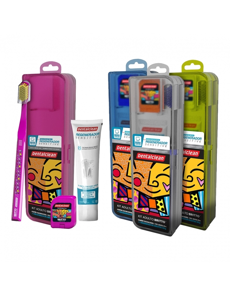 KIT ADULTO VIAGEM ESCOVA DENTAL + GEL DENTAL 50G + FIO DENTAL 25M ROMERO BRITTO DENTALCLEAN